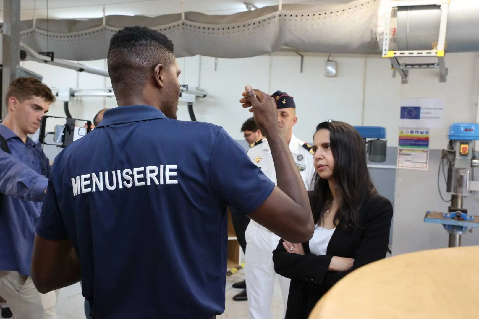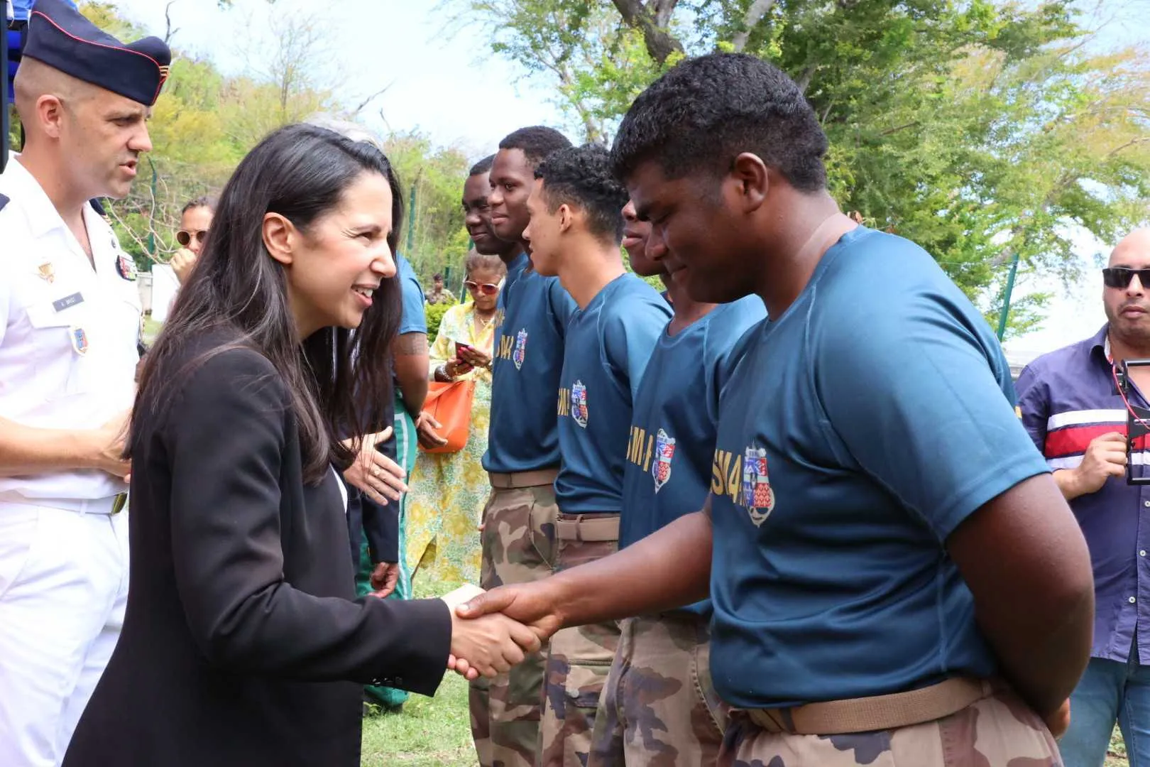 À 10h, elle échange avec des jeunes du RSMA à la caserne Lambert.