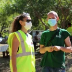 Après une bonne heure à ramasser des déchets dans la rue sous les conseils de agents du service environnement, 1ère halte dans le parc ravine piment pour les enfants au stand de GAB 974 (Groupement des Agriculteurs Biologiques de La Réunion). Là, les petits découvrent les senteurs du thym, du persil et ont droit à une dégustation de bananes bio et de tomates arbustes, un goût nouveau pour beaucoup d’entre eux.