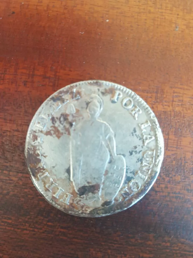 D’après ce que j’ai pu voir sur le net, il s’agirait d’une pièce de la République du Pérou, d’une valeur de 8 réales, datant de 1832 : https://fr.numista.com/catalogue/pieces28262.html