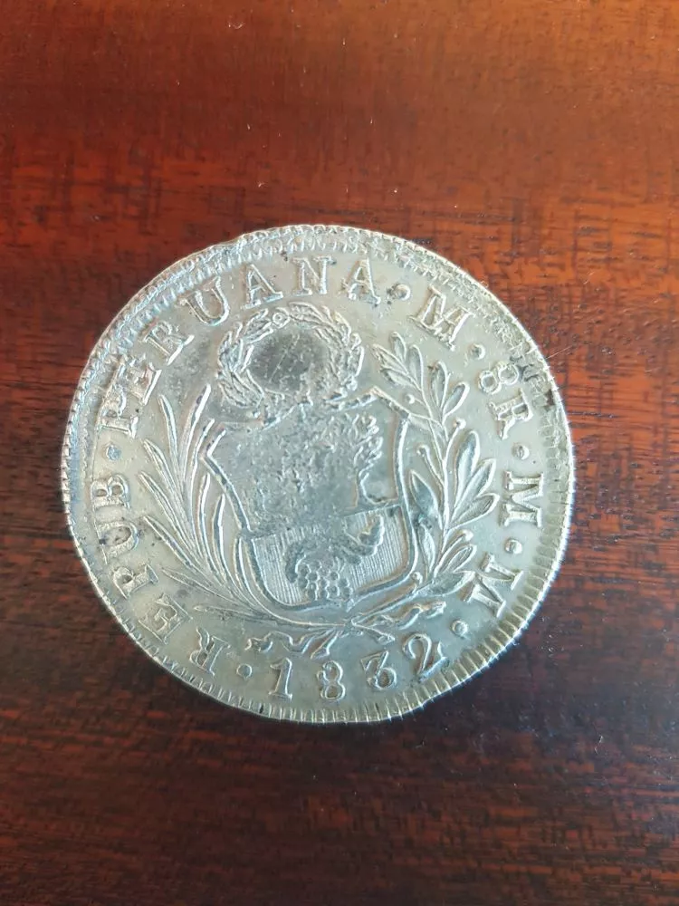 Côté pile, autour des armoiries, il est écrit : REPUB.PERUANA.M.8R.M.M.1832.