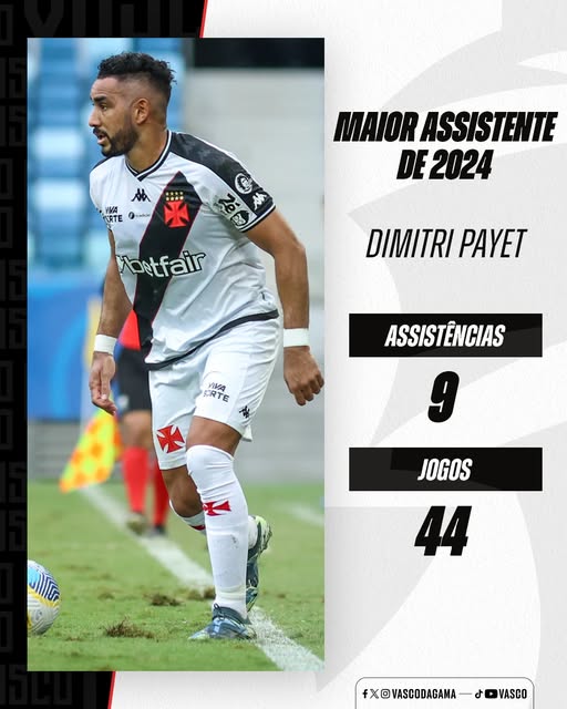 La saison 2024 restera marquée par les performances exceptionnelles de Dimitri Payet, le milieu offensif réunionnais. Portant fièrement les couleurs du Vasco Da Gama, il s’est imposé comme le maître incontesté des passes décisives au cours de cette année footballistique.