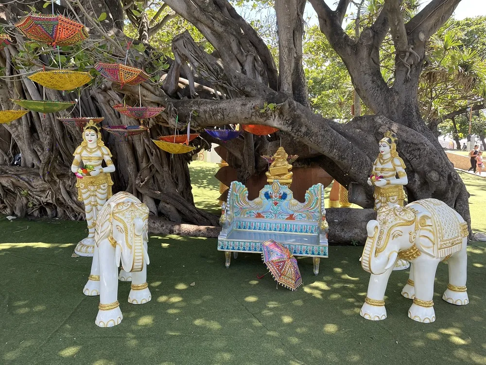 Un «village indien» s’installera sous des chapiteaux aux Jardins de la plage : vente de pâtisseries, ateliers et initiations… Quelques ateliers seront consacrés à l’artisanat et permettront au public de découvrir l’art de fabriquer des bijoux, de dessiner à l’henné, de monter des tambours, d’apprendre à ’écrire en tamoule et à faire de la cuisine indienne avec des spécialités du Sud de l’Inde. Des petits chapiteaux dédiés à la décoration, à la mode, au bien-être permettront de répondre à toutes les questions à propos des Indiens de La Réunion