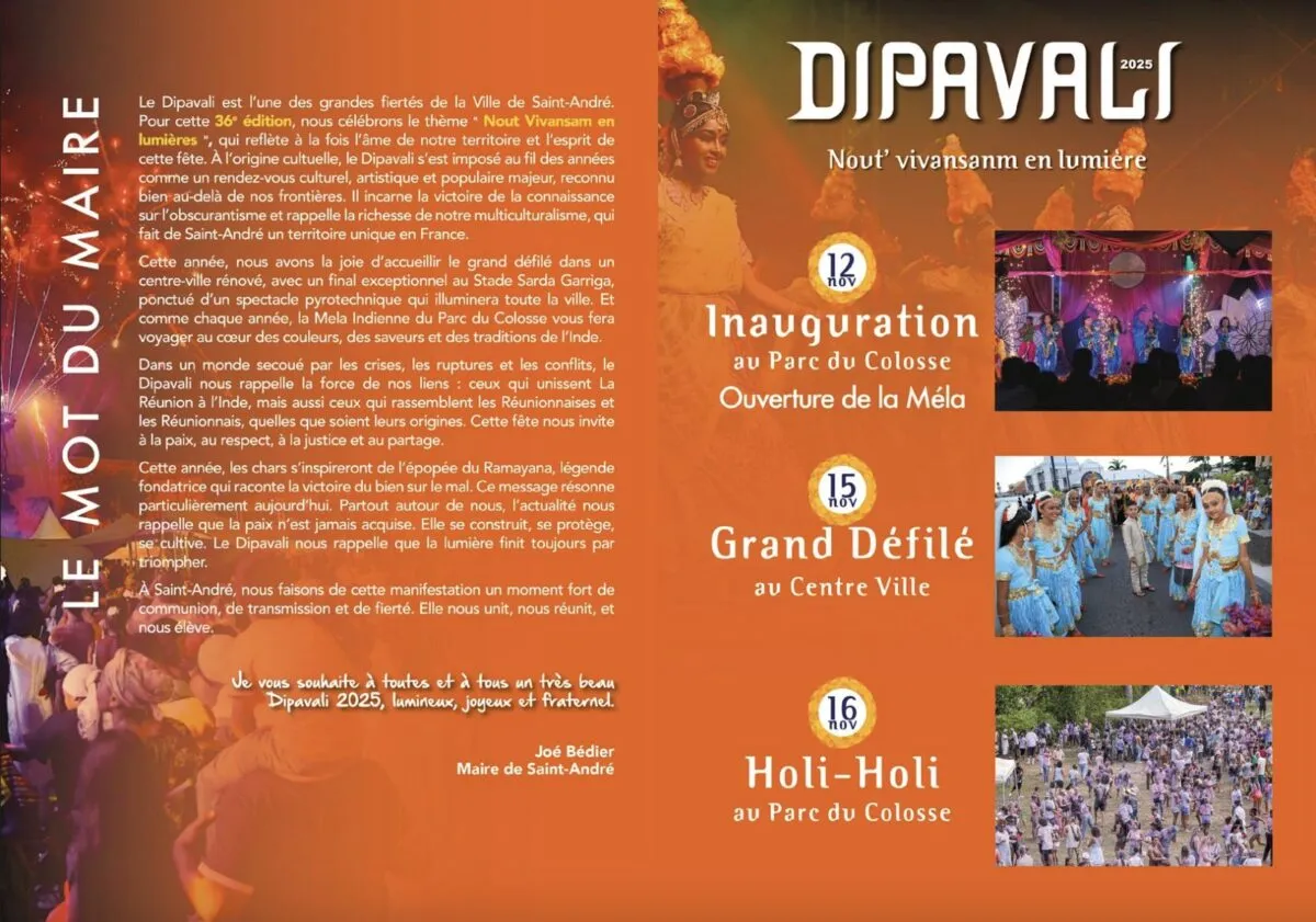 Une fête qui se déroulera du 12 au 16 novembre avec la partie mêla au parc du Colosse. Sans oublier le traditionnel grand défilé des chars indiens, le samedi 15 novembre, à partir de 18 heures, « dans centre-ville rénové » a insisté Joé Bédier. Le Dipavali, cette fête emblématique, également connue sous le nom de Fête de la Lumière, est un événement culturel et cultuel majeur qui rassemble chaque année toute la population de l’île autour de célébrations festives et conviviales. À Saint-André, cette manifestation phare est l’occasion de mettre en avant la richesse de la culture indienne et de renforcer les liens entre les différentes communautés de l’île.