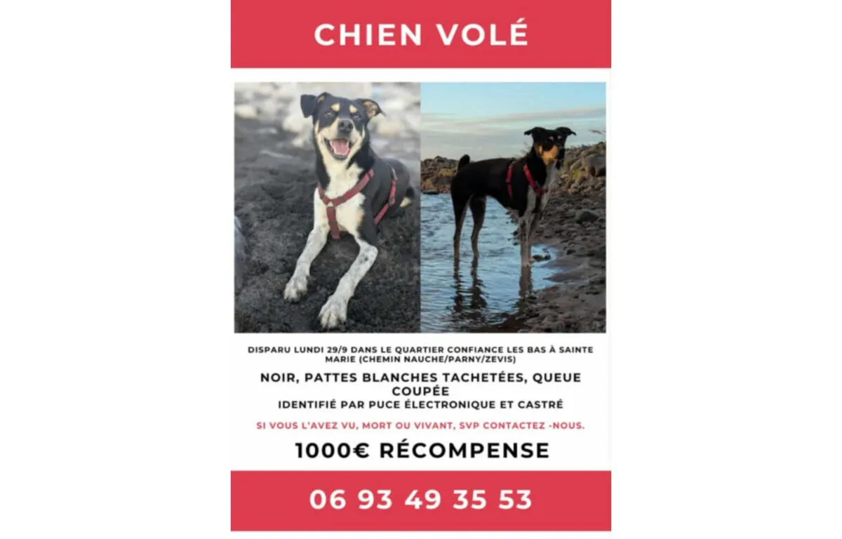 Chien disparu à Sainte-Marie : 1 000 € de récompense