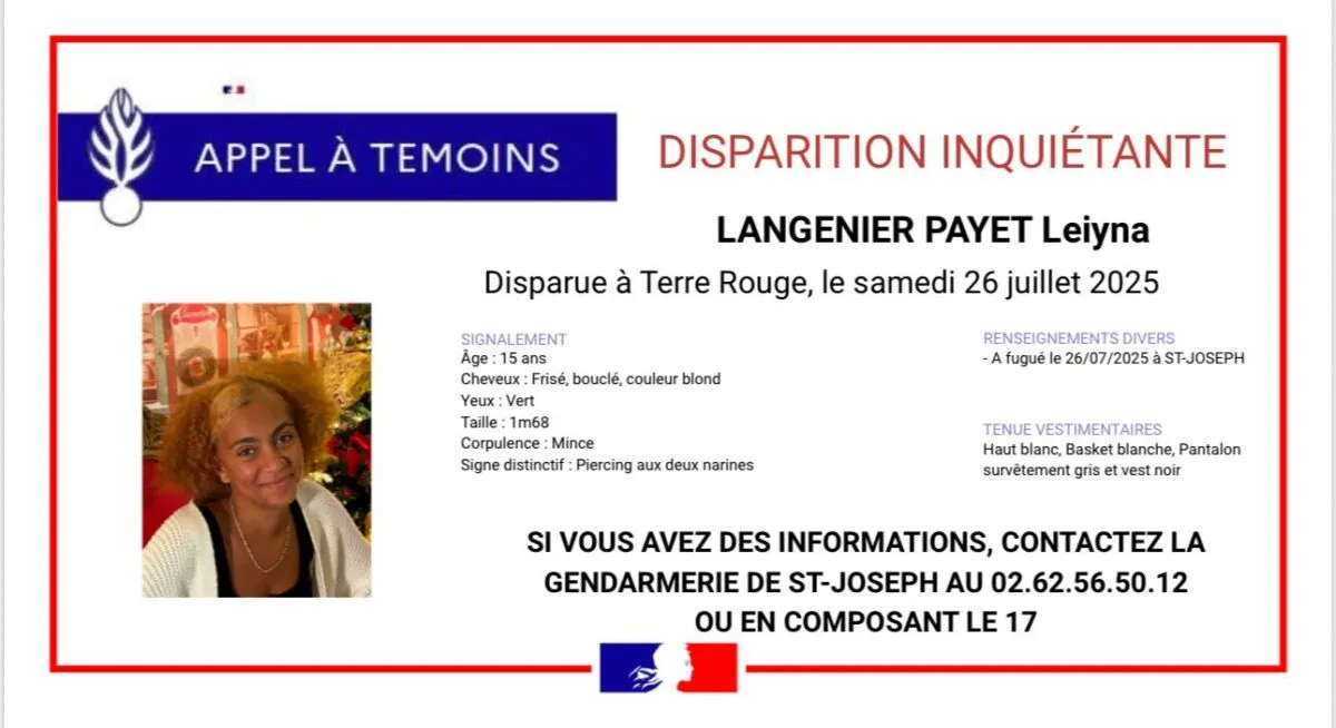 • A fugué le 26/07/2025 à Saint-Joseph