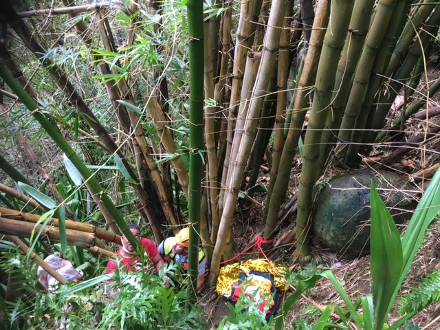 La personne a été découverte à 9h30, consciente, en bas de la ravine, bloquée dans un bosquet de bambous.