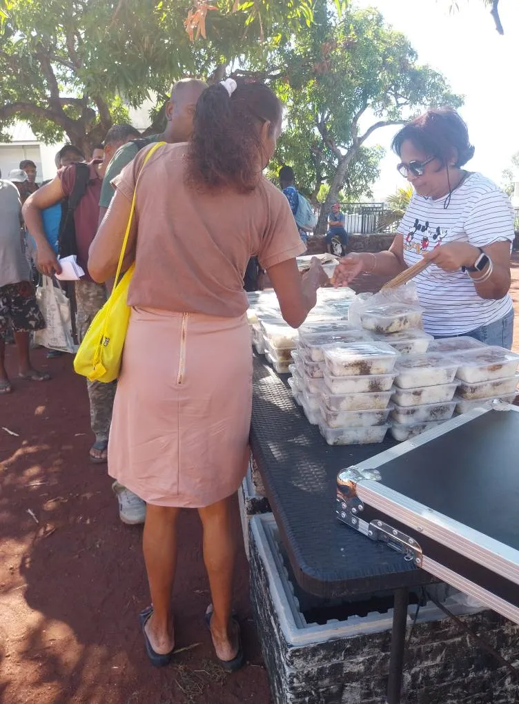 Des chanteurs locaux ont assuré l’animation musicale de l’événement, donnant une autre dimension à ce moment de partage. Le DJ a installé ses platines sous les arbres tandis que les plats chauds, confectionnés dès l’aube, étaient remis un à un avec bienveillance et sourire. Une mention spéciale est adressée à Clif Azor, artiste engagé, toujours présent pour soutenir ces actions caritatives.