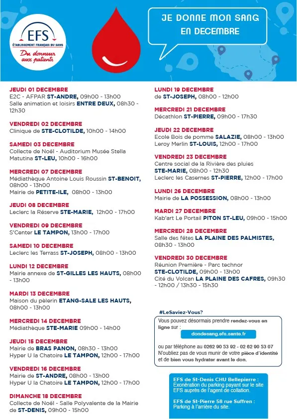 N’attendez plus et programmez votre rendez-vous en ligne : https://efs.link/BJ53k ou par téléphone au 0262 90 53 92 / 0262 90 53 07.