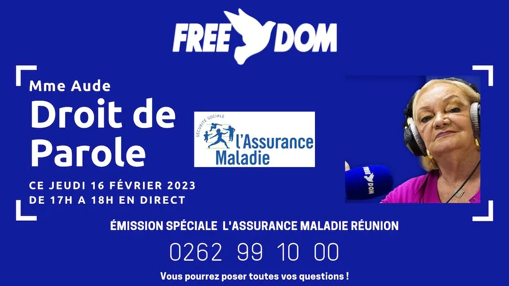 Actus Radio Droit de Parole spécial « assurance maladie » ce 16 février à 17H par La Rédaction 16 février 2023 1 min de lecture 1 Une émission spéciale vous attend chez Mme Aude ce 16 février. Toutes les questions liées à l’assurance maladie, à la sécurité sociale pourront être posées à notre invité spécial en direct. Ne manquez pas toute l’actualité de La Réunion ! Abonnez-vous à la newsletter de Free Dom ! Valider Partager Facebook Twitter Pinterest Linkedin Whatsapp Reddit Email Vous pourriez être intéressé par 26 décembre 2025 Kriké Kraké : le podcast qui donne la parole aux Freedomiens (Podcasts) 26 décembre 2025 FreedoQuotidien : 2 500€ à remporter ce 30 décembre 23 décembre 2025 Quand l’esprit de Noël s’invite au Son du Soleil La Rédaction 1 Commentaire Bonjour madame Aude . pour vous dire toujours disponible pour les auditeurs…. Formidable j’adore vous écoutez.merci infiniment Répondre Signaler un commentaire Laisser un commentaire Annuler la réponseYour email address will not be published. Enregistrer mon nom, mon e-mail et mon site dans le navigateur pour mon prochain commentaire. Current ye@r * Leave this field empty Article précédent Droit de Parole spécial « EDF et Chèque Energie » ce mercredi 15 février à 17H Article suivant Hommage à Kaya ce mardi 21 février sur Free Dom 2 Articles récents... Mercredi 31 décembre 2025 – Météo, éphéméride et horoscope du jour Hommage à Johnny Hallyday sur Free Dom 2 ce 5 décembre Mardi 30 décembre 2025 – Météo, éphéméride et horoscope du jour Saint-Joseph : découverte de 2337 plants de cannabis, arrestation de 2 individus Point sur le réseau routier départemental, 29 décembre à 16H30 Suicide sur le pont de la Rivière d’Abord : importante mobilisation des secours et des forces de l’ordre Radier submergé à Ilet Furcy : la route de Cilaos fermée à la circulation cette nuit Fortes pluies : appel à la plus grande prudence à Saint-Paul Saint-Gilles-les-Bains : une route impraticable, les riverains montent au créneau (VIDEOS) Très grands excès de vitesse : un délit passible de prison depuis le 29 décembre 2025