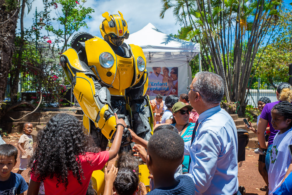 En compagnie de la vice-Présidente Augustine Romano et des Conseillers départementaux Eglantine Victorine, Fabiola Lagourde et Albert Gastrin, le Président Cyrille Melchior a fait le tour des ateliers et a partagé des moments d’amusement avec les enfants… Les robots, les magiciens et autres mascottes appréciés par les marmailles étaient de sortie. « Le Département tenait à offrir ce moment festif pour marquer cette journée car il faut donner de la joie et de l’émotion aux enfants et aux familles. C’est aussi un moment d’échange et de sensibilisation pour faire connaître notamment les possibilités d’agir et pour aller à la rencontre des organismes et des professionnels » a déclaré Cyrille Melchior qui a rappelé par ailleurs l’organisation régulière des rencontres pour renforcer la parentalité dans les 4 coins de l’île. Le Président n’a pas manqué de saluer le travail des quelque 850 familles d’accueil soutenues par le Département au sein desquels sont accueillis près de 2500 enfants.