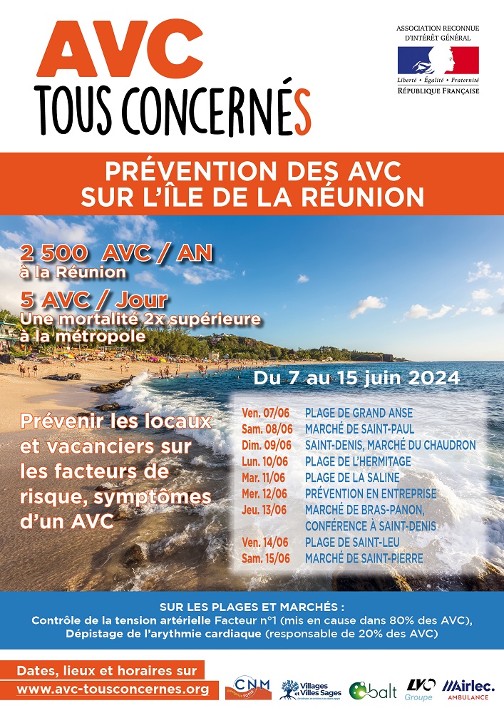 AVC tous concernéS – est une association de prévention des AVC (basée en métropole), qui réunit des victimes d’AVC ou aidants, et qui ont choisi de s’engager bénévolement pour mener à bien des actions de prévention.