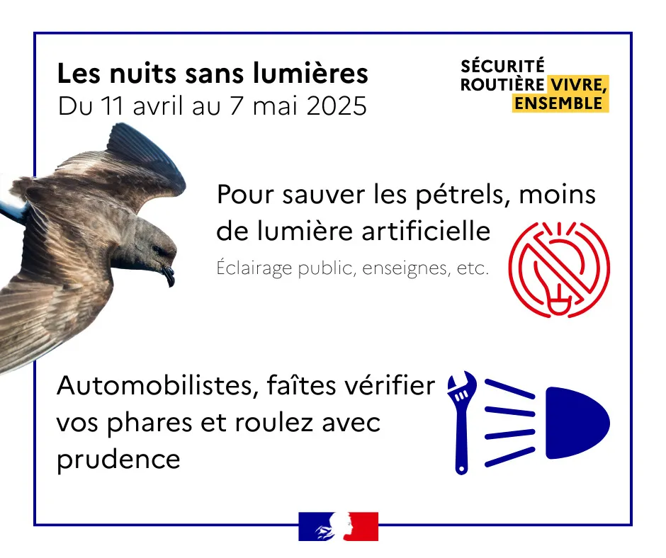 À La Réunion, l’opération “Nuits sans lumières” est reconduite du 11 avril au 7 mai 2025 pour protéger une espèce emblématique et en danger : le pétrel de Barau. En parallèle, les usagers de la route sont appelés à adapter leur comportement.