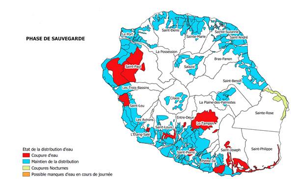 • Le passage du cyclone Belal a engendré des perturbations sur le réseau d’eau potable impactant la qualité de l’eau. Aussi, il est recommandé à la population de privilégier l’eau embouteillée, ou à défaut, de faire bouillir l’eau du robinet et la maintenir à ébullition au moins trois minutes.