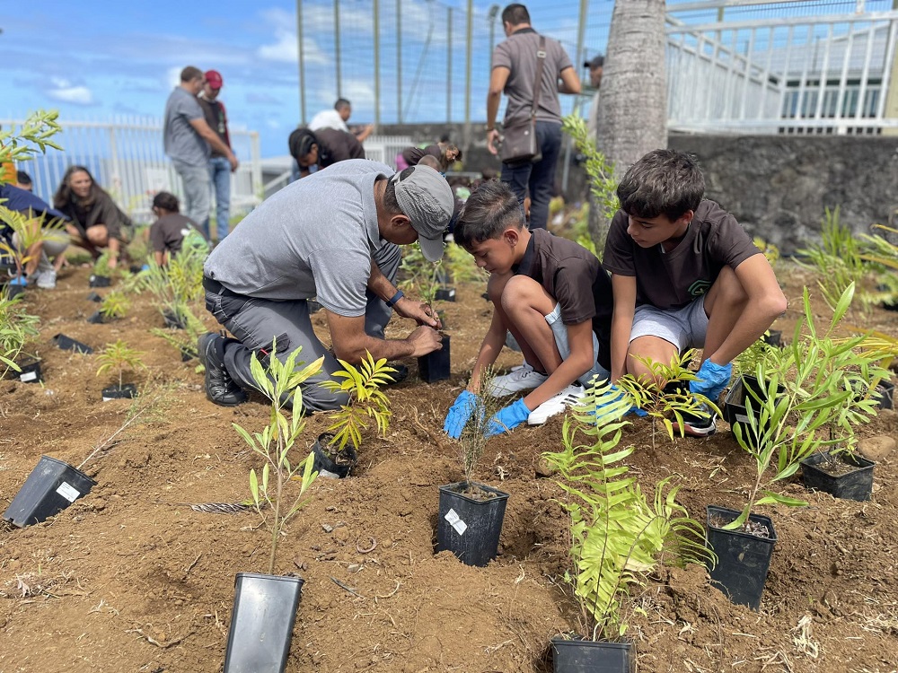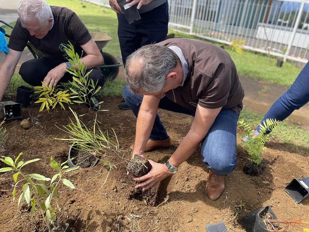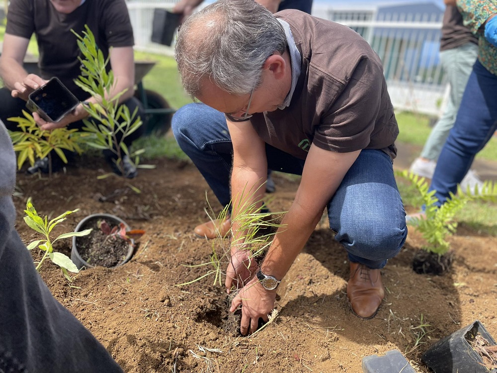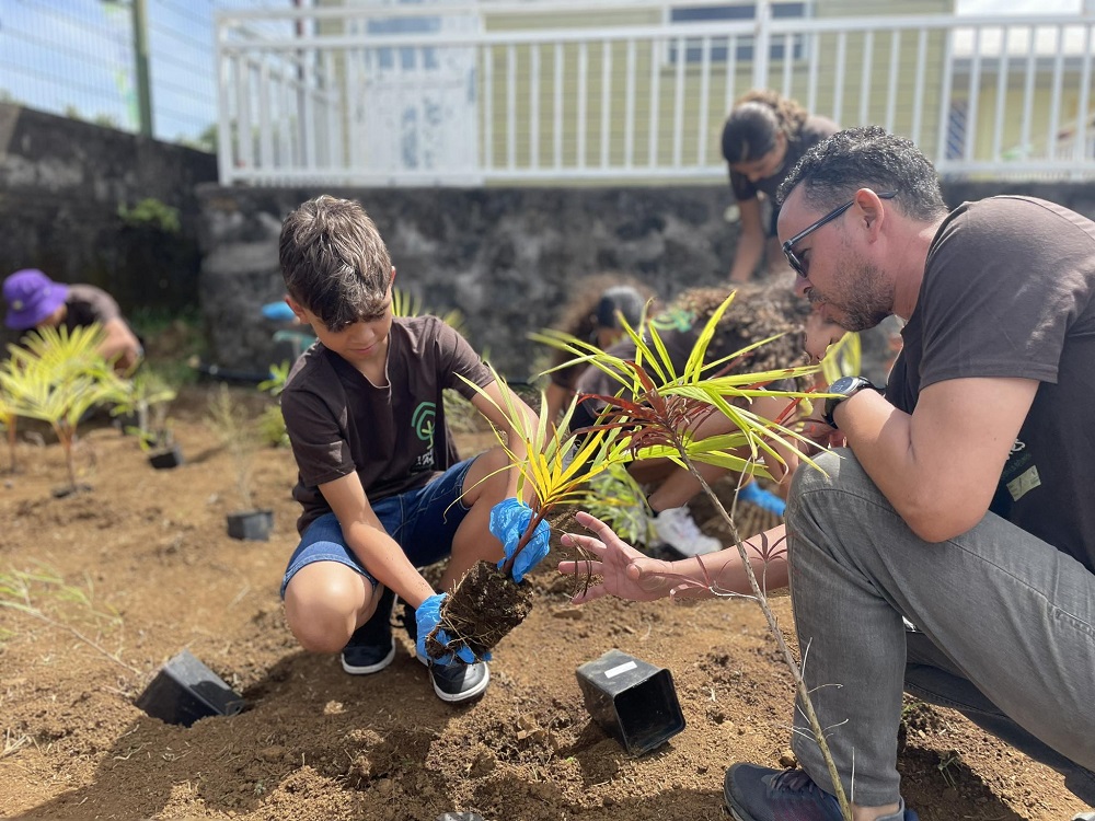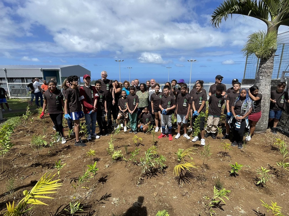 « Nous avons souhaité que les collèges prennent pleinement part à la dynamique lancée à l’échelle du territoire et qui vise à planter plus d’1 million d’espèces indigènes et endémiques partout où nous le pouvons » expliquait ainsi le vice-Président Serge Hoareau, qui représentait le Président Cyrille Melchior lors de cette plantation, au côté de la Conseillère départementale Sabrina Tionohoué. Et de continuer : « Nous sommes convaincus que ces projets permettent aussi de sensibiliser chaque collégien sur l’importance de sauver des arbres, et donc des vies. » Serge Hoareau saluait également la participation de l’établissement, parmi les 15 finalistes, aux Trophées 2024 « La forêt s’invite à l’école ».