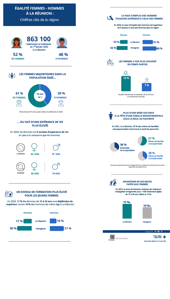 « Égalité Femmes Hommes à La Réunion : chiffres clés de la région», Insee Dossier La Réunion