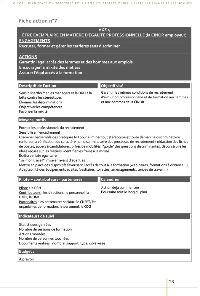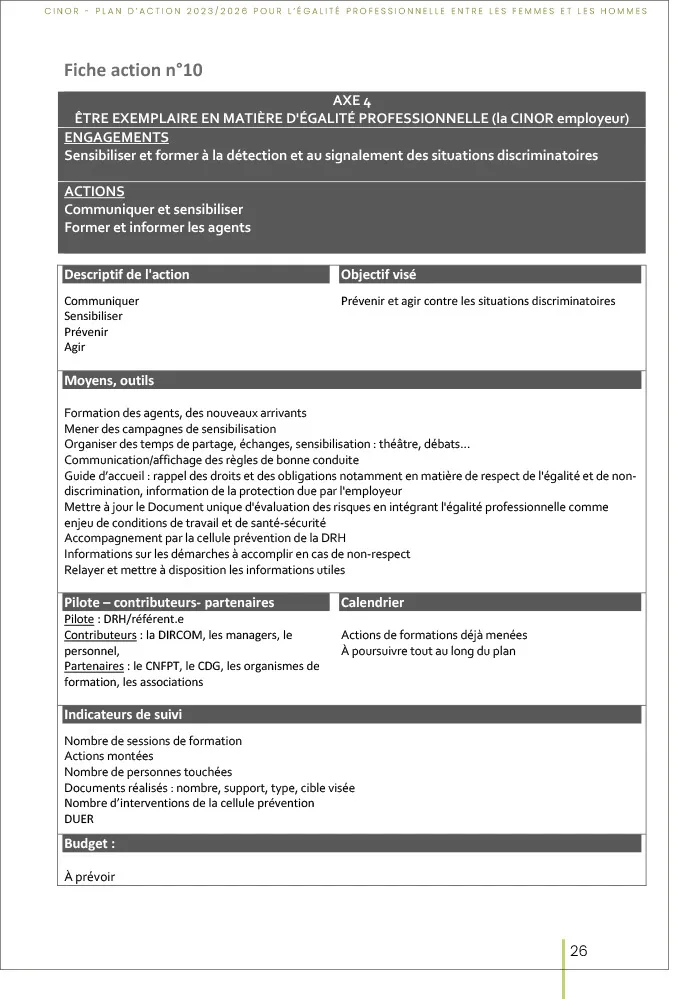 Continuant dans cette dynamique, La CINOR a saisi l’opportunité de l’obligation posée par la loi, pour poursuivre dans ces démarches en élaborant son plan d’action, avec des actions qui se veulent concrètes et opérationnelles.