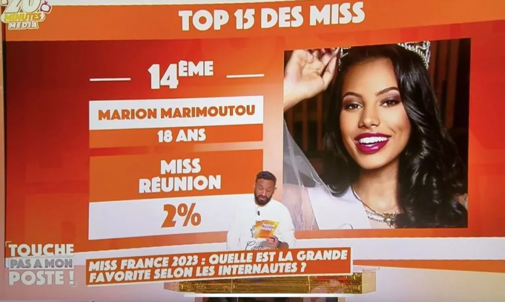 Selon un sondage réalisé sur Internet dans l’émission TPMP qui sera diffusée ce jeudi 03 novembre 2022, notre Miss Réunion 2022, Marion Marimoutou, ne ferait même pas partie du top 10.