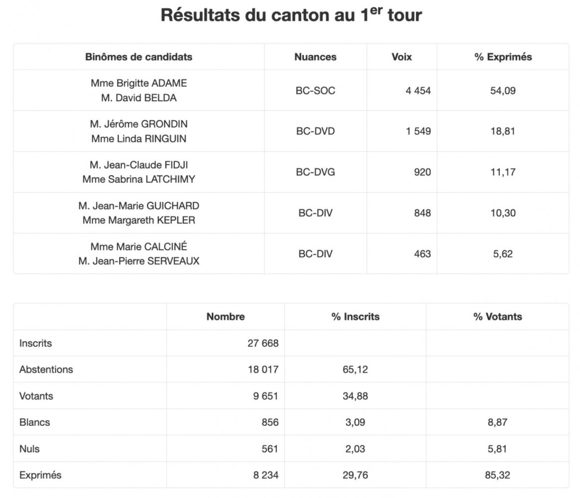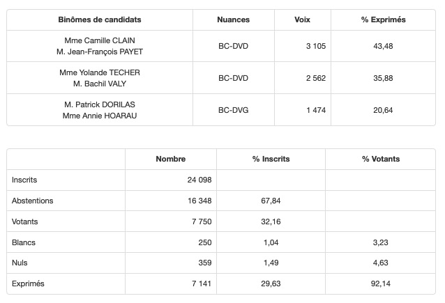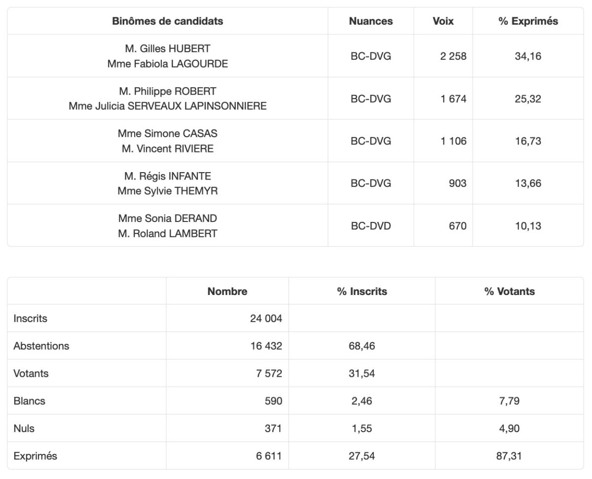 Élections départementales : les résultats canton par canton; 3 binômes élus dès le 1er tour