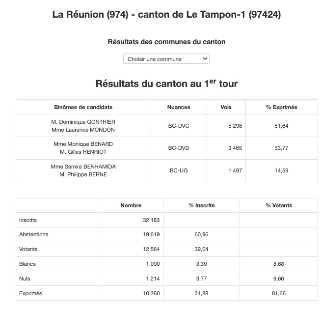 • Canton 19 (St-Paul 3) :  Jean-François Nativel en tête, mais les scores sont très serrés