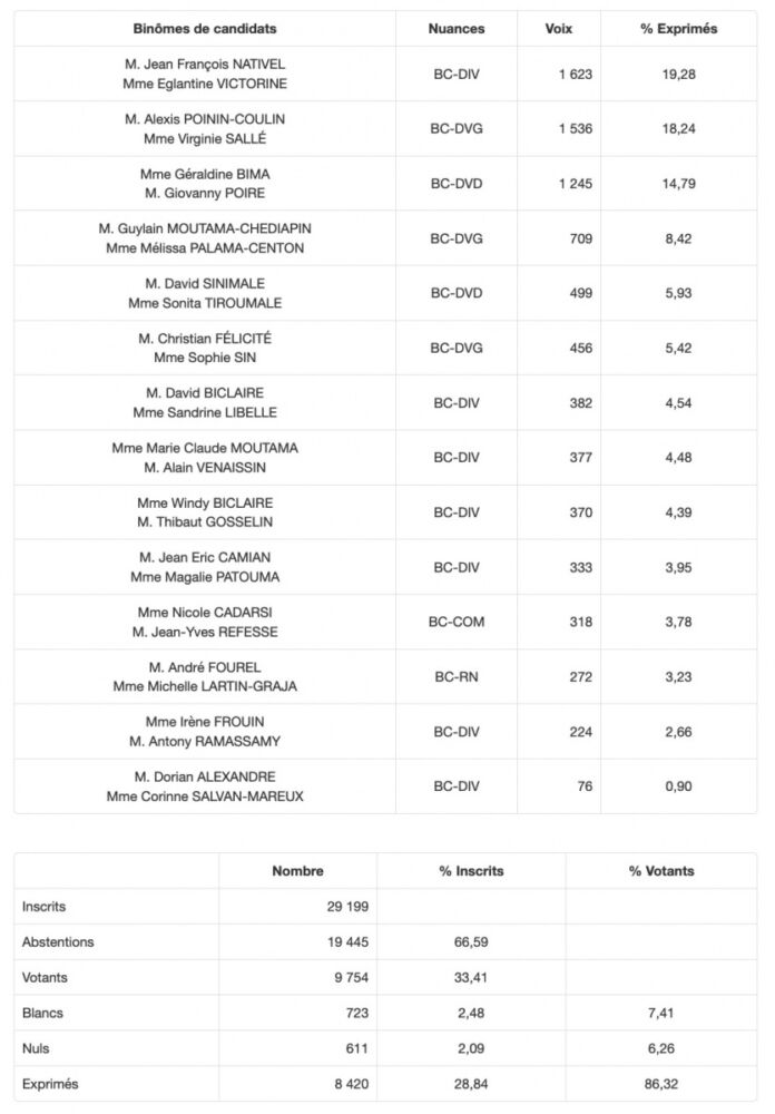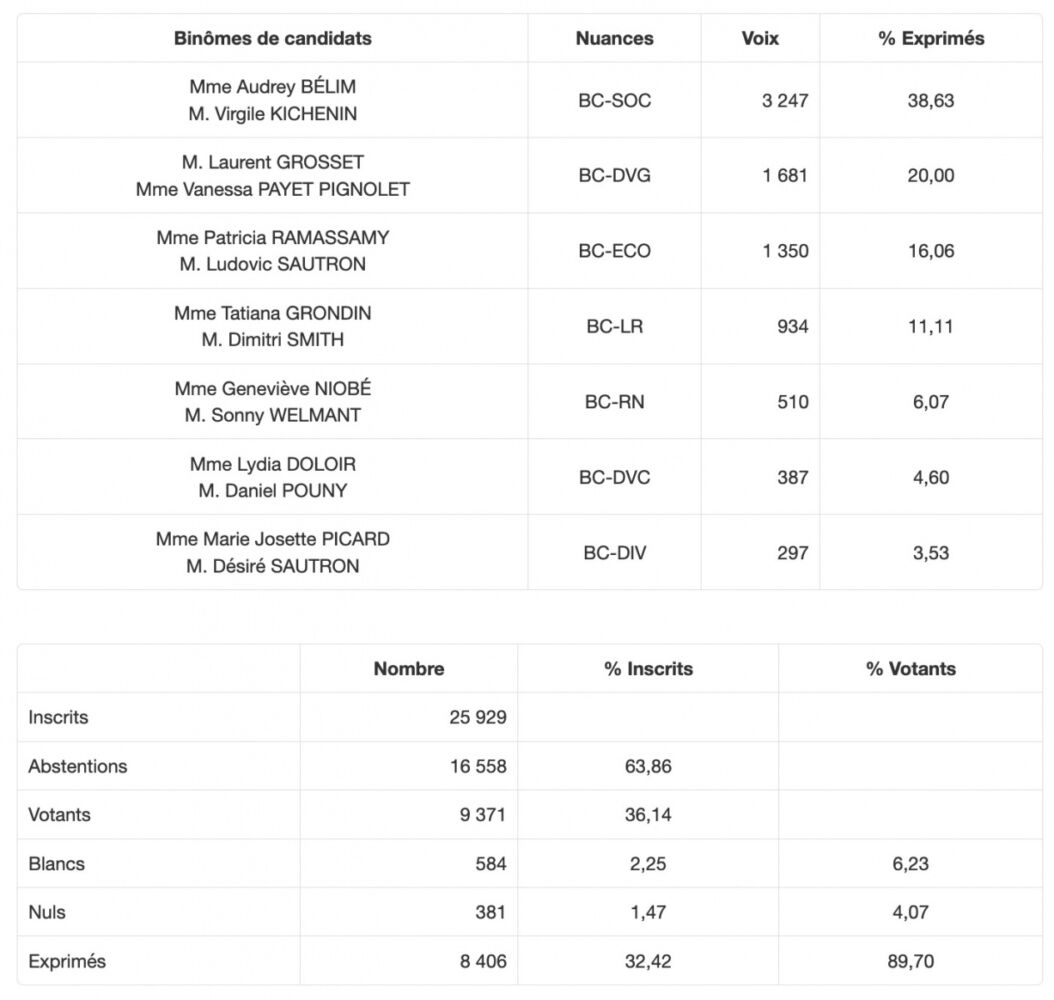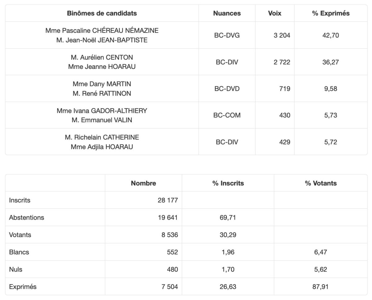 • Canton 7 (St-Benoit 1) : la sortante Sabrina Ramin termine 2ème