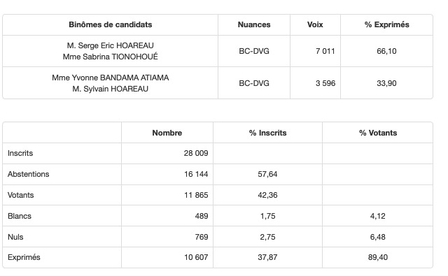 • Canton n° 22 (Saint-Pierre-3) : le binôme Serge Hoareau/Sabrina Tionohoué élu