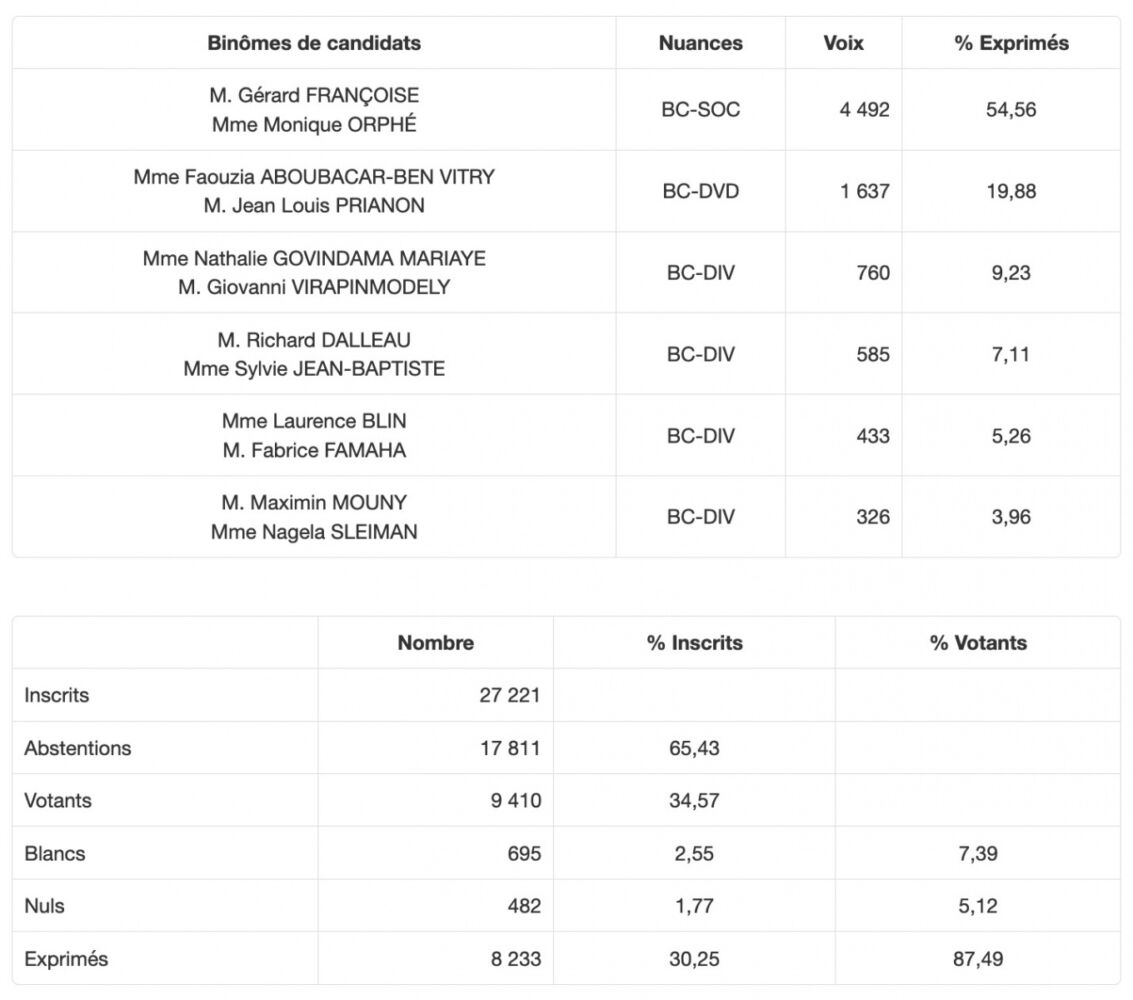 • Canton n° 1 (L’Etang-Salé) : Le binôme Ferrere/Simbaye élu