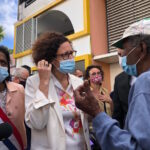 La ministre déléguée au logement a effectué toute sa visite en marchant. Visite qui a démarré devant la mairie et qui s’est achevée au centre de vaccination Covid, avenue de la République en passant par la place de l’église, puis par le « Carré Eglise », ensuite par le centre commercial, la salle des fêtes, le TCSP en travaux et par le lotissement Victoria qui sera bientôt réhabilité. Sur son trajet, Emmanuelle Wargon, accompagnée du préfet Jacques Billant, du maire de Saint-André Joé Bédier, de la députée Nadia Ramassamy et d’autres personnalités politiques et civiles, a été interpellée  par des citoyens se plaignant de logements sociaux « trop petits, comme des cages à lapins » ou encore de l’augmentation récente de 9% du loyer pour un logement de la SHLMR.