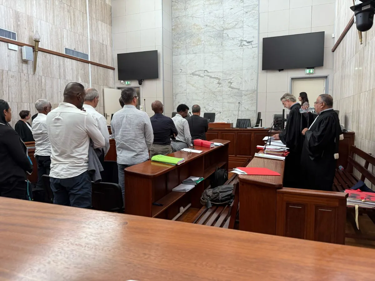 15h40 : après la quatrième suspension d’audience depuis le matin, la cour reprend place. Le président de la Cour d’appel Jacques Rousseau prend la parole et annonce que l’affaire est renvoyée aux 15, 16 et 17 avril 2026 à 8h30. La Cour a retenu l’exception de nullité demandée par les avocats de la défense; Exception de nullité qui a été jointe au fond du dossier, lequel dossier va donc être réexaminé l’année prochaine. Après les prochaines municipales.