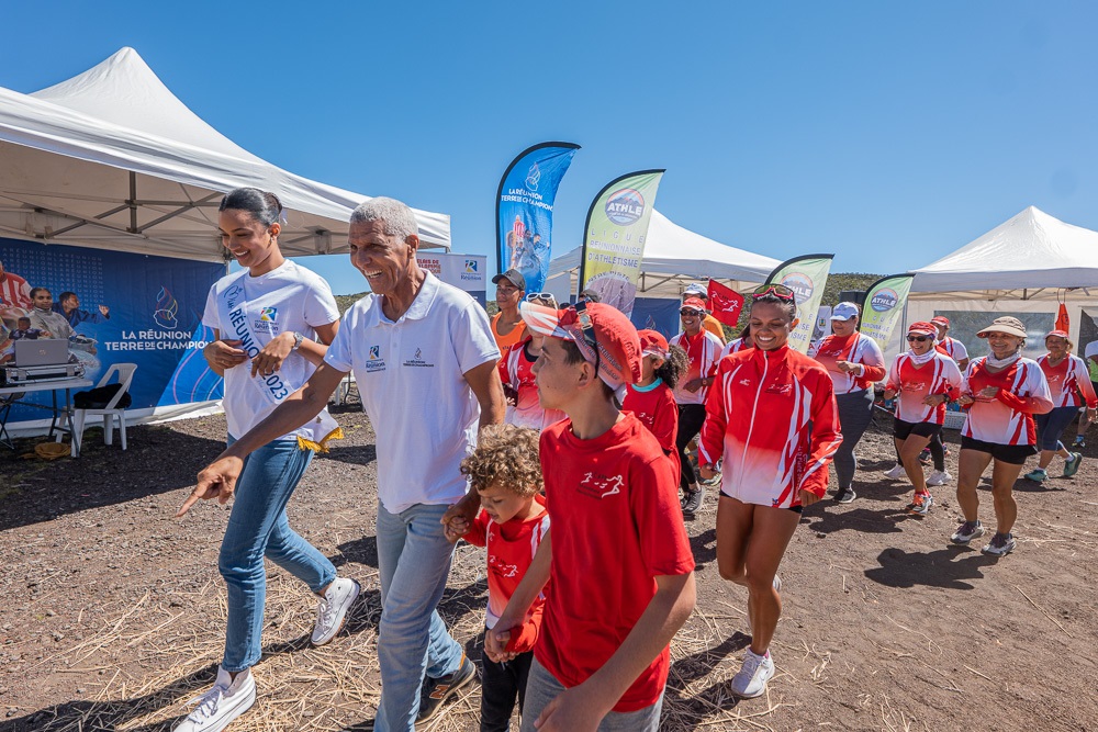 En avant-goût de l’accueil de la flamme olympique dans l’île, prévu le 12 juin prochain, le Département a organisé ce 10 avril, une nouvelle opération « La Réunion, Terre de Champions« , au cœur du Parc national. C’est au Pas-des-Sables, sur la route du Volcan qu’a été érigé cette fois-ci, le village sportif réunissant la grande famille des sportifs réunionnais dans une ambiance conviviale. Avec ses 2200 m d’altitude, la Plaine-des-Sables sera le point culminant à l’échelle nationale, qui accueillera le passage de la flamme olympique le 12 juin prochain. Une fierté de plus pour La Réunion selon Augustine Romano, Vice-présidente du Département qui « invite tous les Réunionnais(es) à participer pleinement à cet événement exceptionnel et inédit. C’est un moment historique que nous vivrons ce jour-là, car jamais notre île n’a accueilli cette flamme symbolisant un message de paix et d’amitié aux peuples. Le Département a promis de faire de cet évènement un véritable moment de célébration du sport. La Réunion, Terre de Champions est destinée à mettre à l’honneur les visages et personnalités qui incarnent le dépassement de soi, la réussite, l’abnégation, et bien sûr l’excellence : 9 relayeurs porteront ainsi les couleurs du Département le 12 juin« .