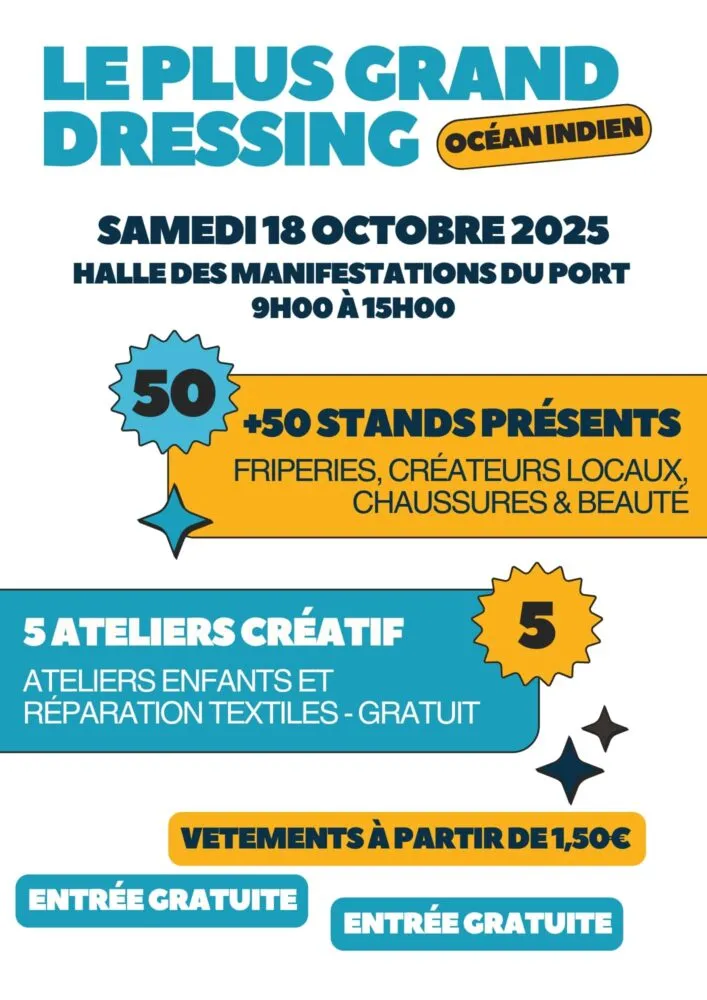 La Halle des Manifestations du Port s’est transformée aujourd’hui en véritable paradis du shopping malin. Jusqu’à 15h, le public peut profiter d’un événement inédit : le plus grand dressing de La Réunion, une journée entièrement dédiée à la seconde main, aux créateurs locaux et aux bons plans mode.
