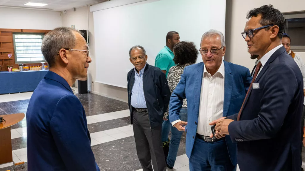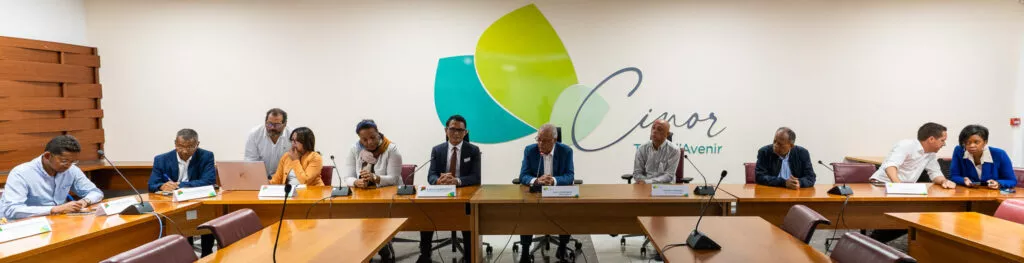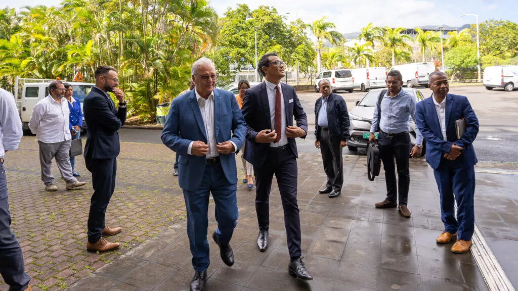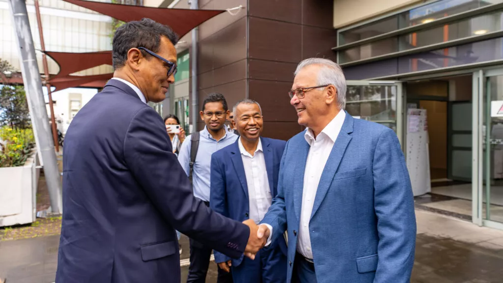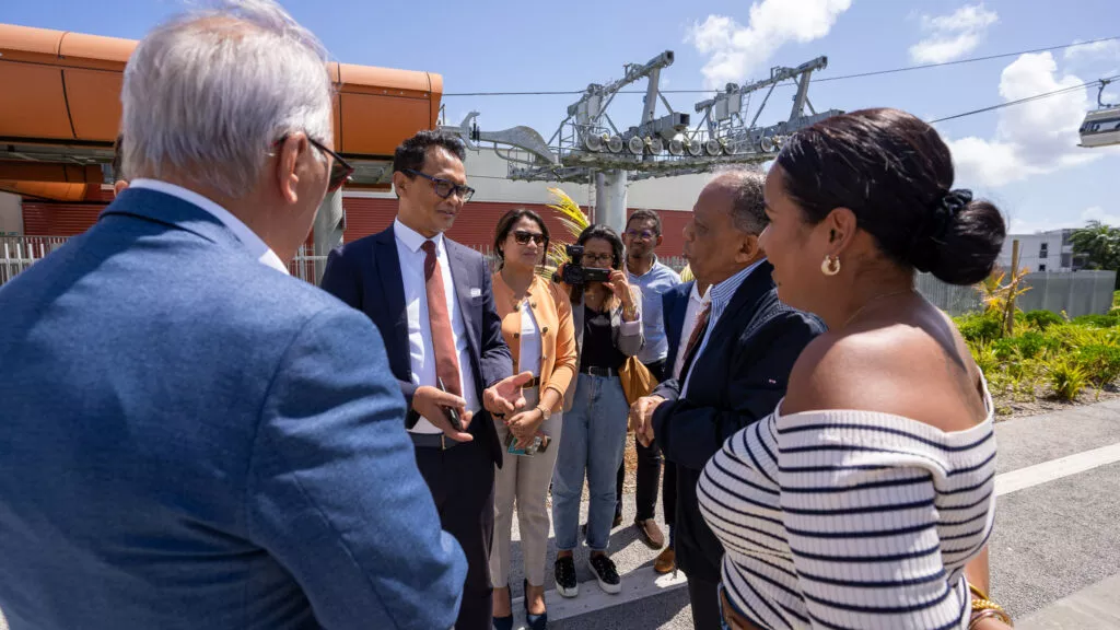 Gérard Andriamanohisoa, secrétaire d’État chargé des Nouvelles Villes et de l’Habitat auprès de la Présidence de Madagascar, a été reçu par Maurice GIRONCEL le vendredi 23 septembre 2022, accompagné de sa délégation pour une visite des équipements de La CINOR. Au menu de cette visite : le téléphérique Papang, mais aussi de la station d’épuration du grand Prado et la Cité des Arts.