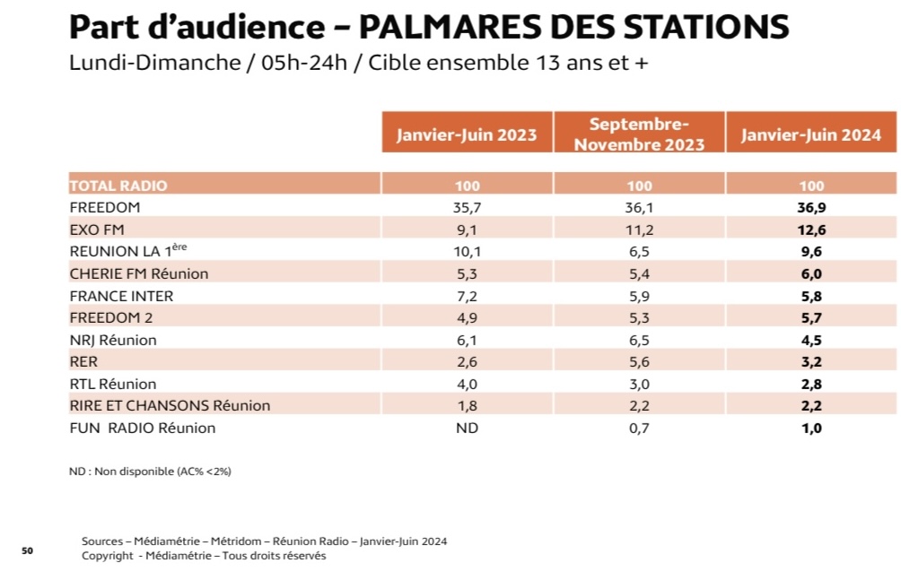 Les chiffres parlent d’eux-mêmes. Ce sont ceux de Médiamétrie. Jugez-en par vous mêmes ! Merci encore à vous chères auditrices et chers auditeurs. Ce succès de Free Dom 2 montre bien qu’on a vraiment besoin d’un peu de douceur dans ce monde incertain dans lequel nous vivons. Ne dit-on pas que la musique adoucit les mœurs ! Et quand, en plus, il s’agit de la belle musique, celle qui berce les oreilles tout en faisant rêver… Que demande le peuple ! Merci encore !