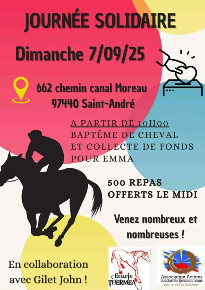 Ce dimanche 7 septembre 2025, une grande Journée Solidaire se tiendra à Saint-André, au 662 chemin canal Moreau.