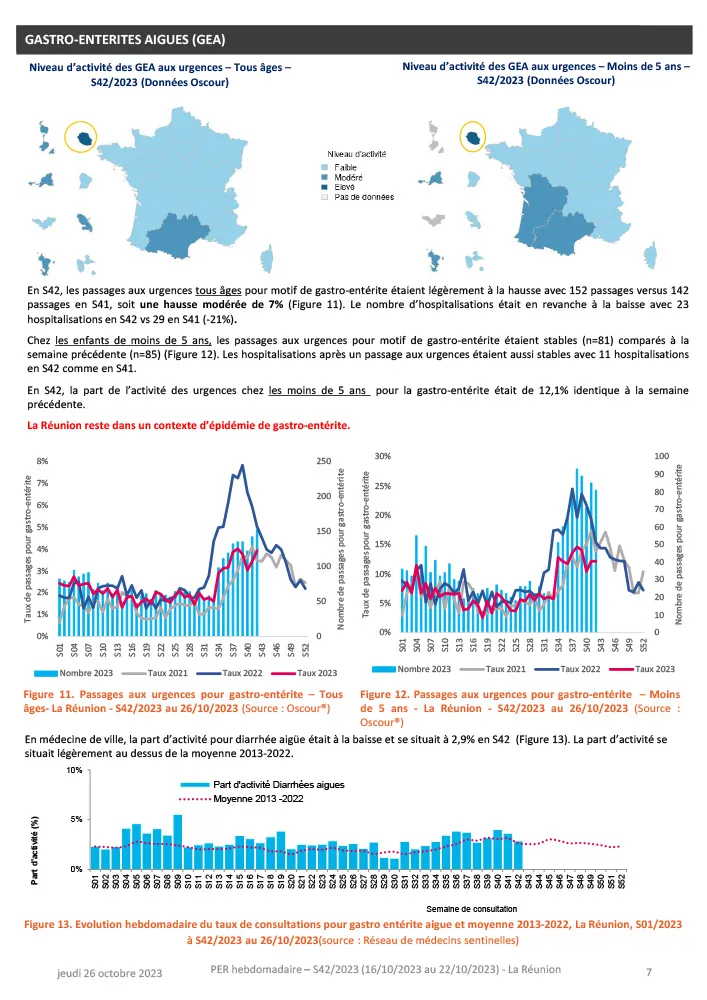 - Gastro-entérite : La réunion est en épidémie de gastro-entérite (Les indicateurs restaient stables chez les moins de 5 ans)
