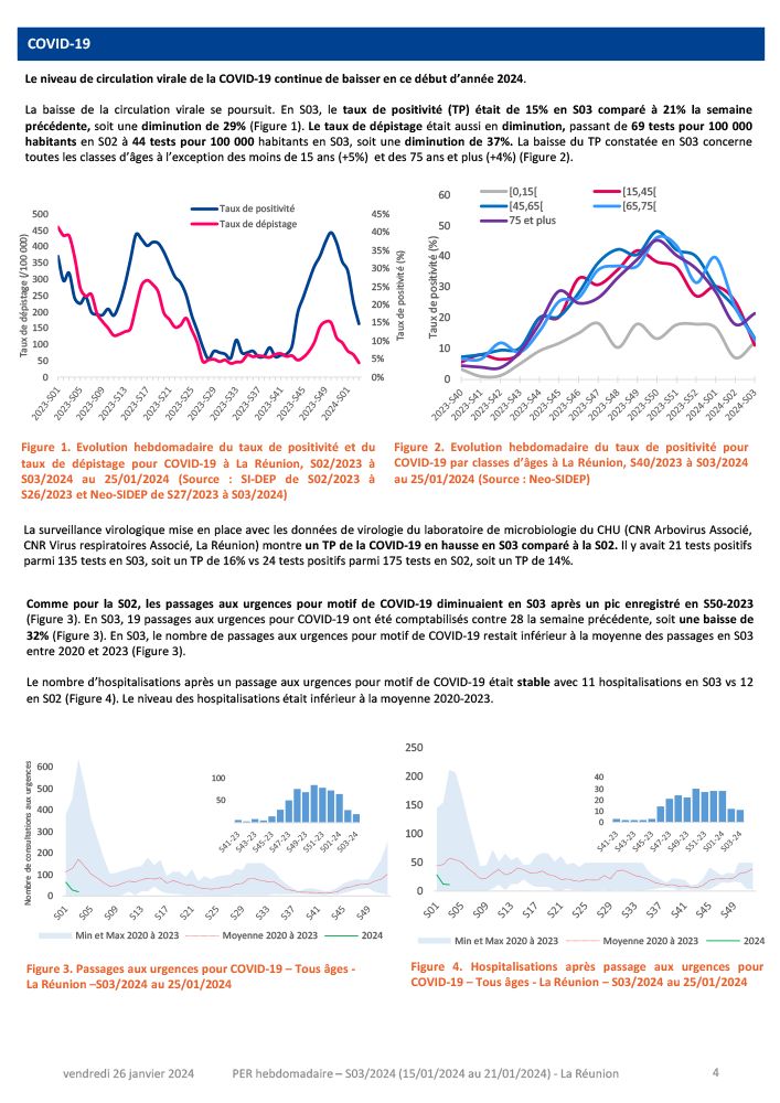 - COVID-19 : La circulation virale poursuit sa diminution en S03. Les passages aux urgences également.