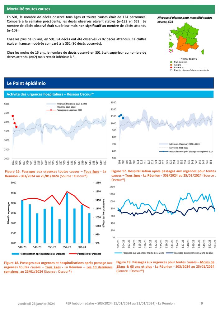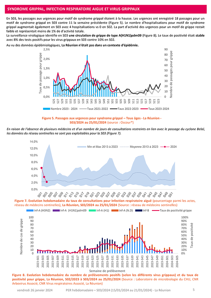 - Grippe : La Réunion n’est plus en épidémie de grippe. Hausse des passages aux urgences et des hospitalisations.