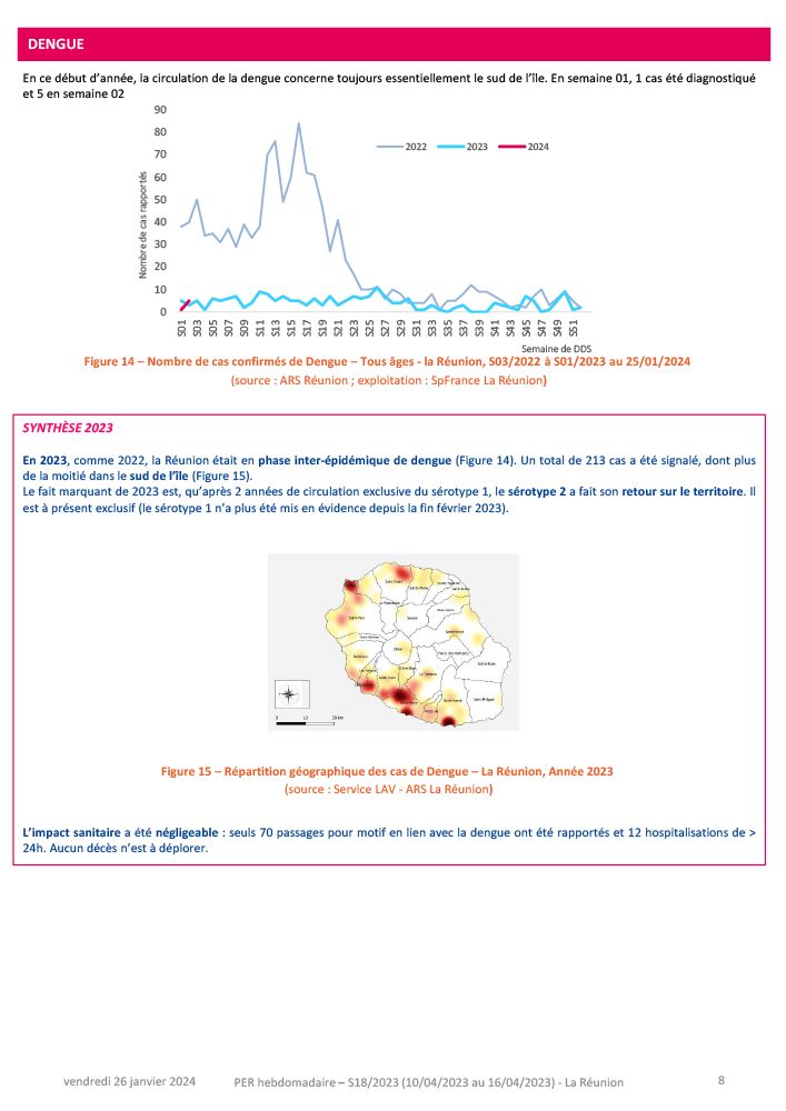 - Dengue : La Réunion est en phase inter-épidémique de dengue. La circulation reste très limitée et essentiellement cantonnée au sud de l’île.
