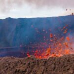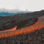 - la présence d’un lac de lave à l’intérieur du cône le plus en amont,