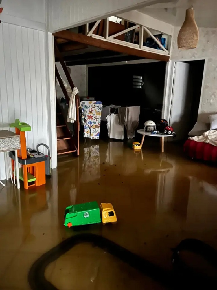 A L’Étang-Salé les Bains, le lac de la Cité Pétrole a débordé, engendrant des inondations dévastatrices qui ont touché plus de 20 maisons, submergeant les habitations jusqu’à un mètre d’eau.