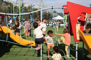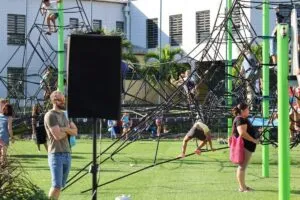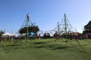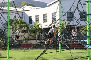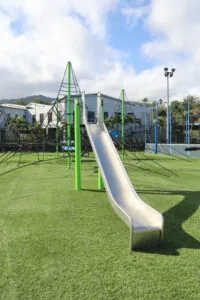 L’équipement comprend des jeux pour enfants, des structures sportives accessibles à tous et des espaces adaptés aux seniors. L’objectif est de favoriser les rencontres et activités communes entre générations.