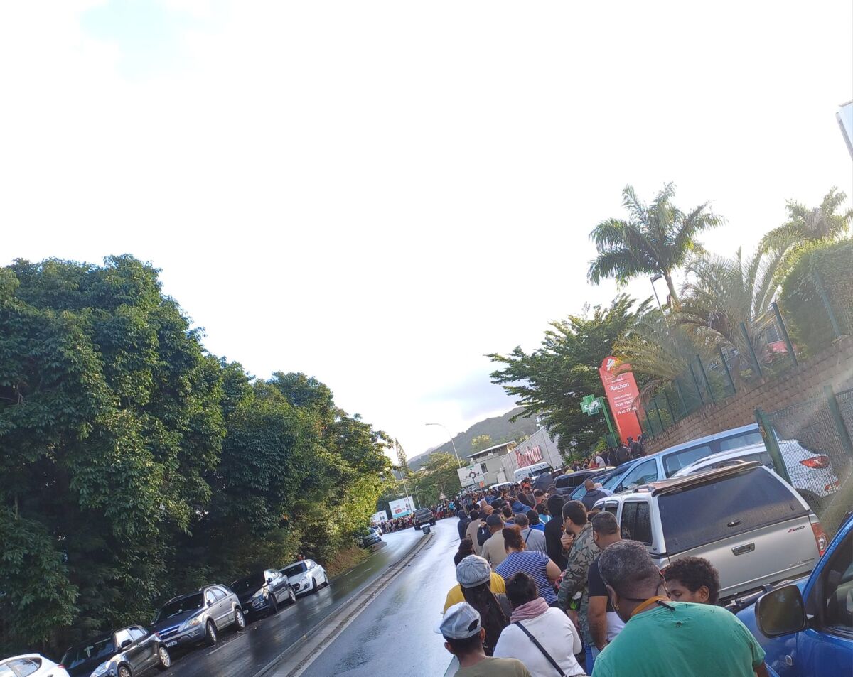 C’est la même scène devant les grandes surfaces et petits commerces ouverts des files d’attente interminables