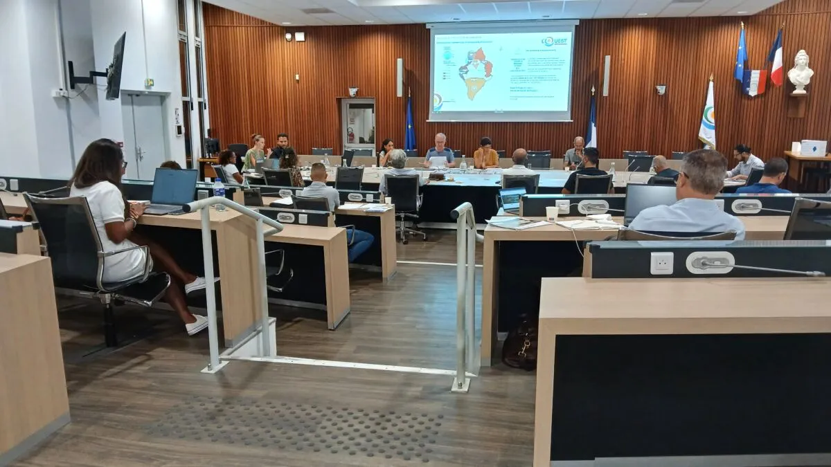 En ouverture de séance, Vanessa Miranville, vice-présidente déléguée au Développement Durable et à l’Innovation, est revenue sur le passage du cyclone Garance et ses impacts sur l’île. Au-delà, des cyclones, ce sont tous les aléas climatiques : sécheresses, inondations, glissements de terrain qui doivent être intégrés aux projets d’aménagement.