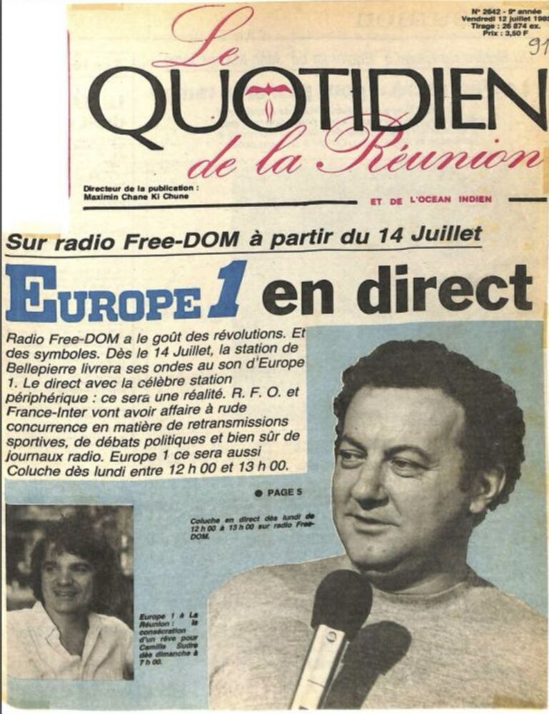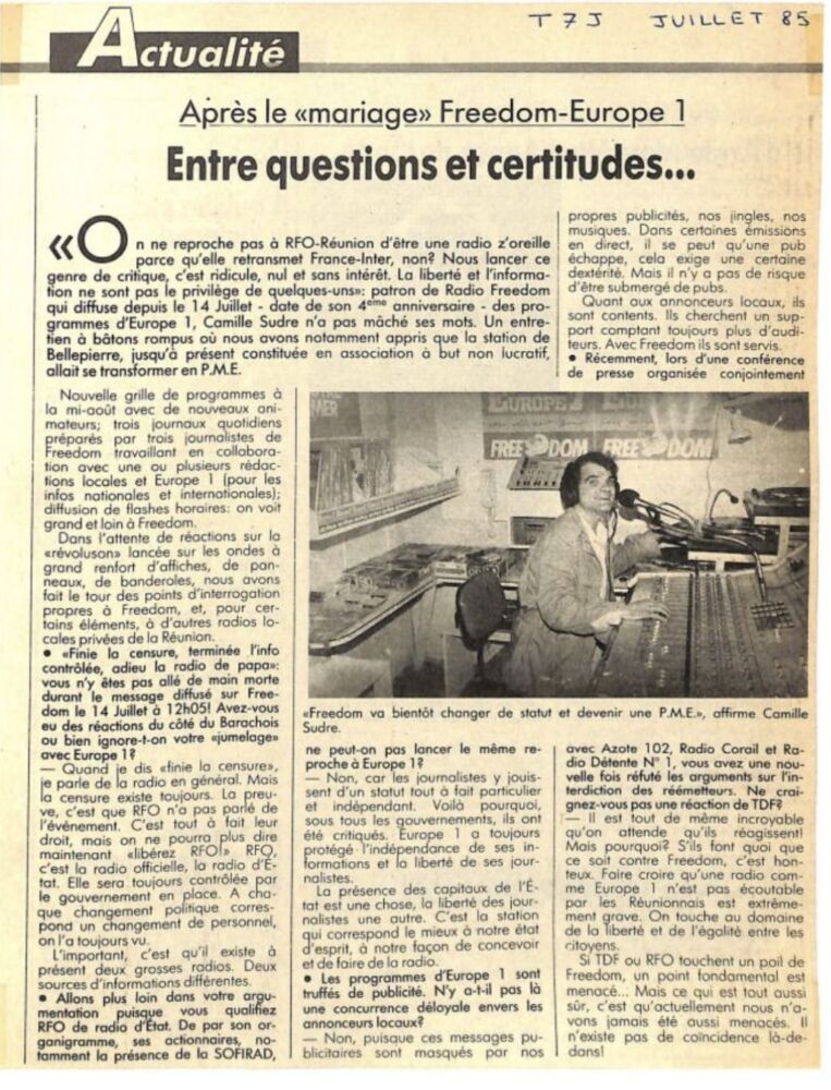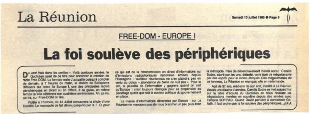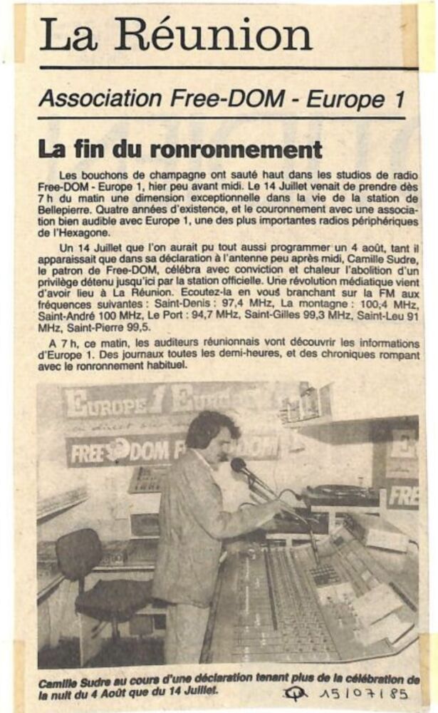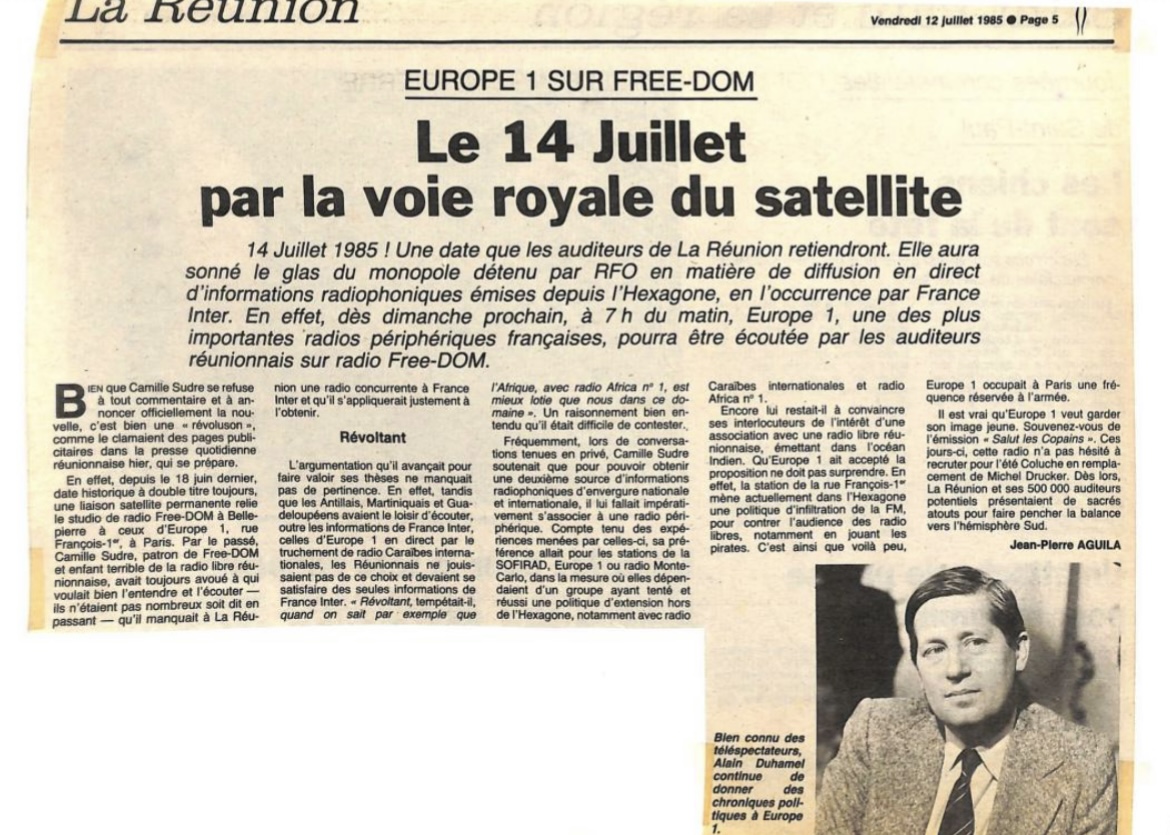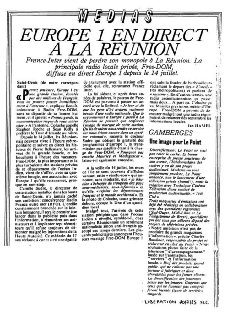 « France Inter vient de perdre son monopole à la Reunion ».(libération 20 juillet 1985)