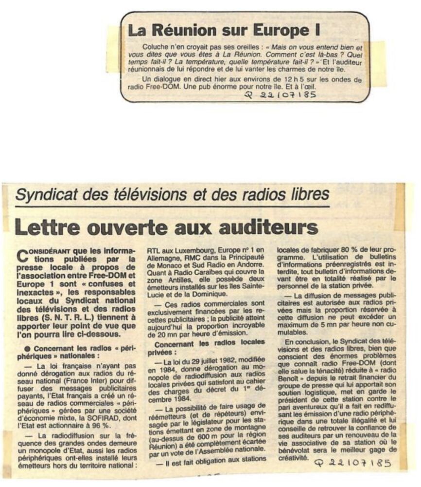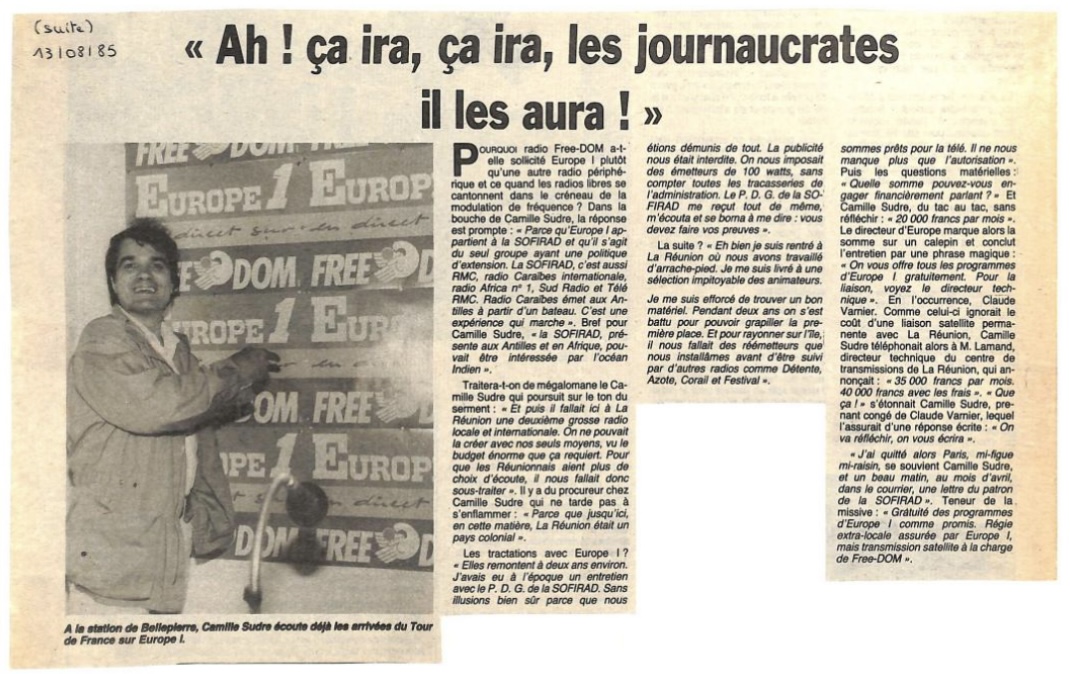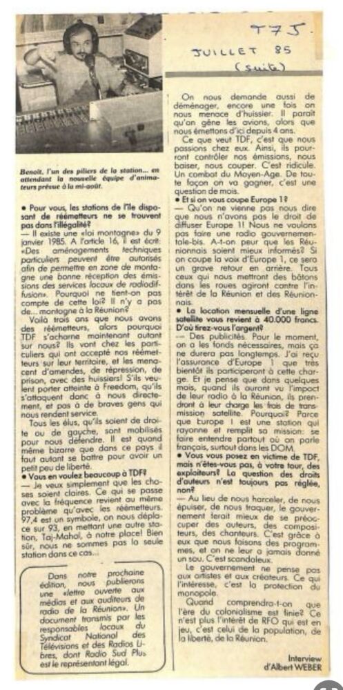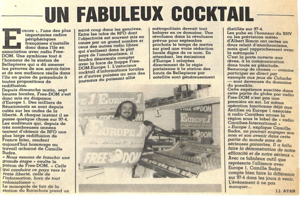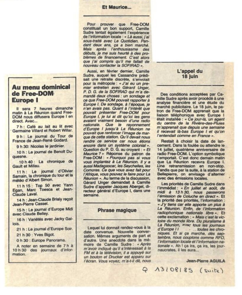 « France Inter vient de perdre son monopole à la Reunion ».(libération 20 juillet 1985)