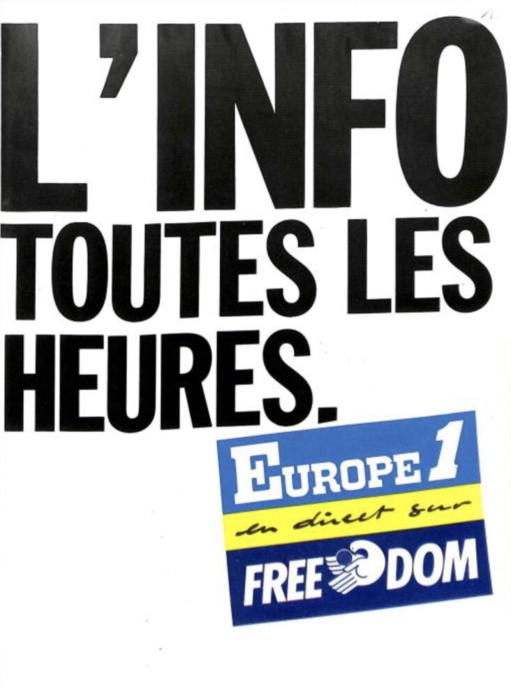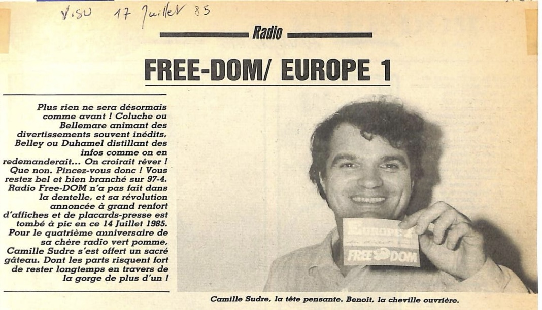 La première retransmission de Europe 1 sur Free Dom a eu lieu le 14 juillet 1985 à 7h00.