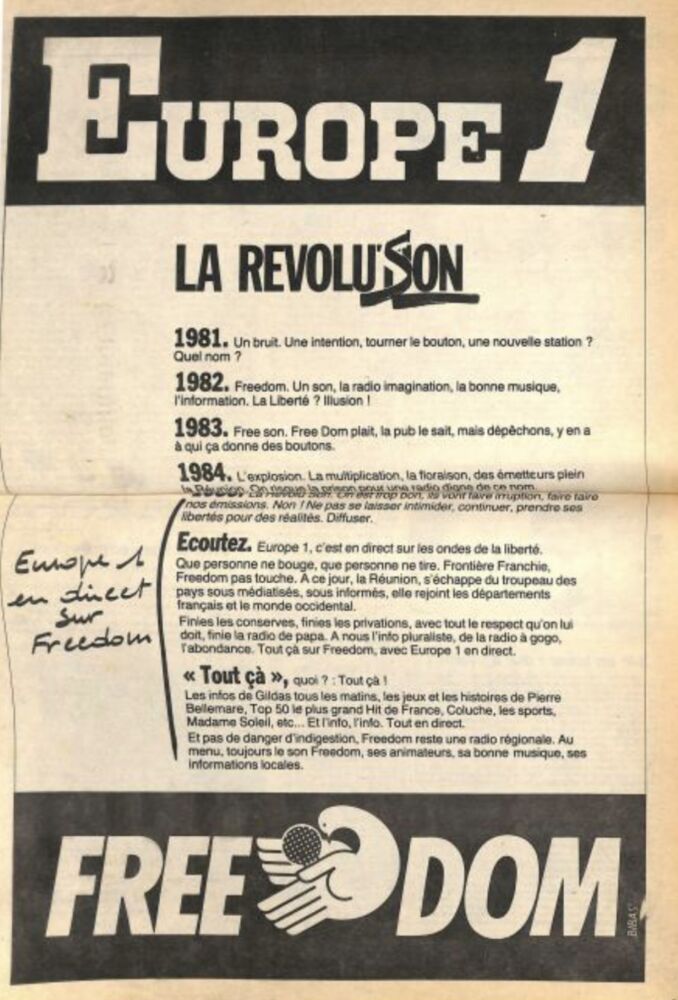 10. Gros poisson d’avril. Zoreils comprend pas créole pou écouter chaleur tropical là-bas. Et puis Freedom néna son indépendance, Li sa pas fait commande à Li par Europe 1. Li va perde de son identité radio locale . Freedom survit grâce à l’audimat des auditeurs réunionnais, il va pas se faire bouffer par une grosse radio de l’ hexagone. À moins que je me trompe.