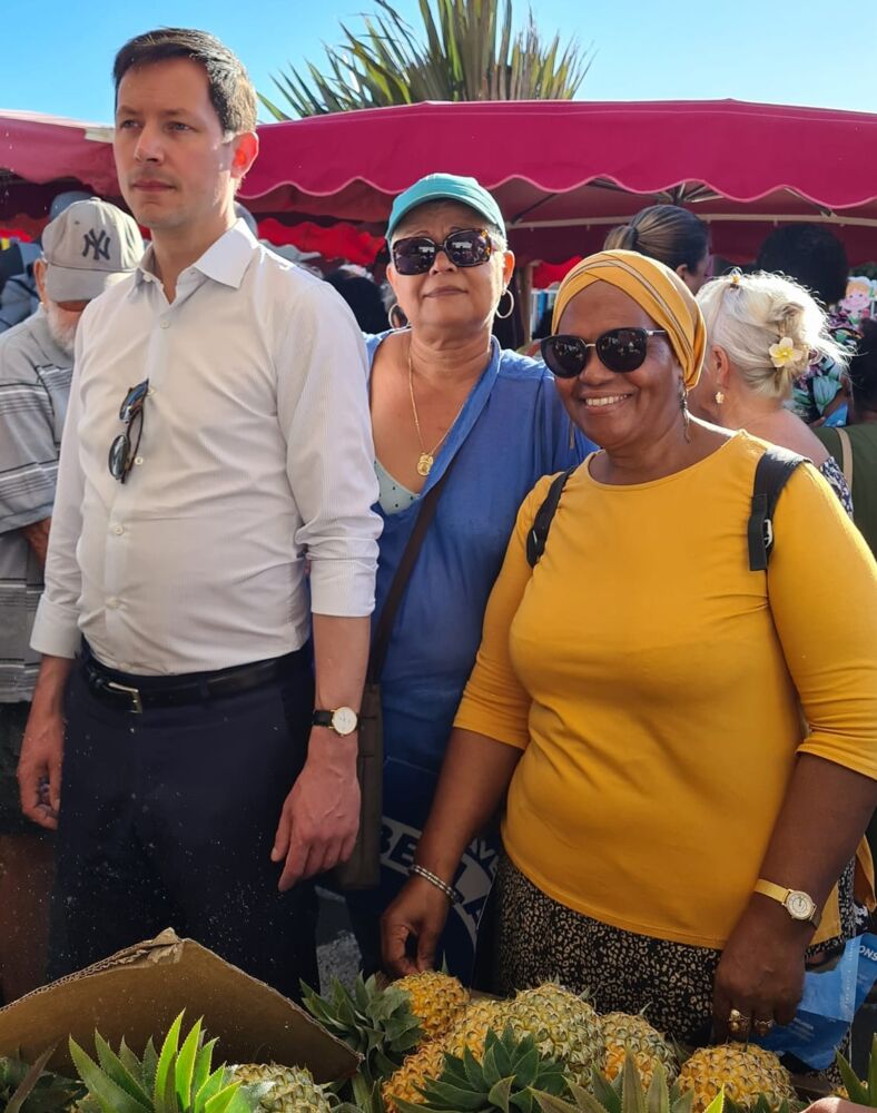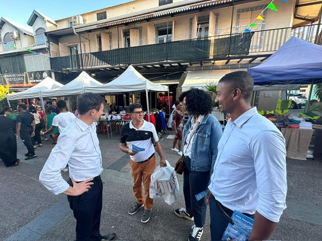 Le candidat « LR » en visite au marché forain de Saint-Pierre, accompagné d’une cinquantaine de militants « Les Républicains » de Saint-Pierre.