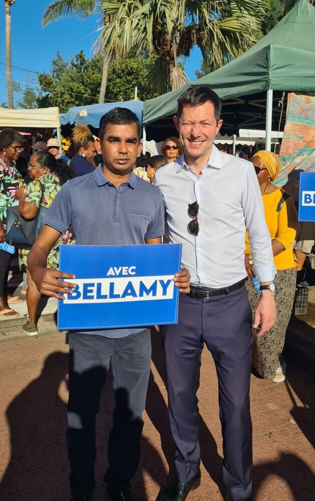 Ensuite, à Saint-Denis vers 16 heures, le candidat « LR » aux Européennes a déambulé dans la rue Maréchal Leclerc, accompagné de Farid Mangrolia et de la députée Nathalie Bassire.