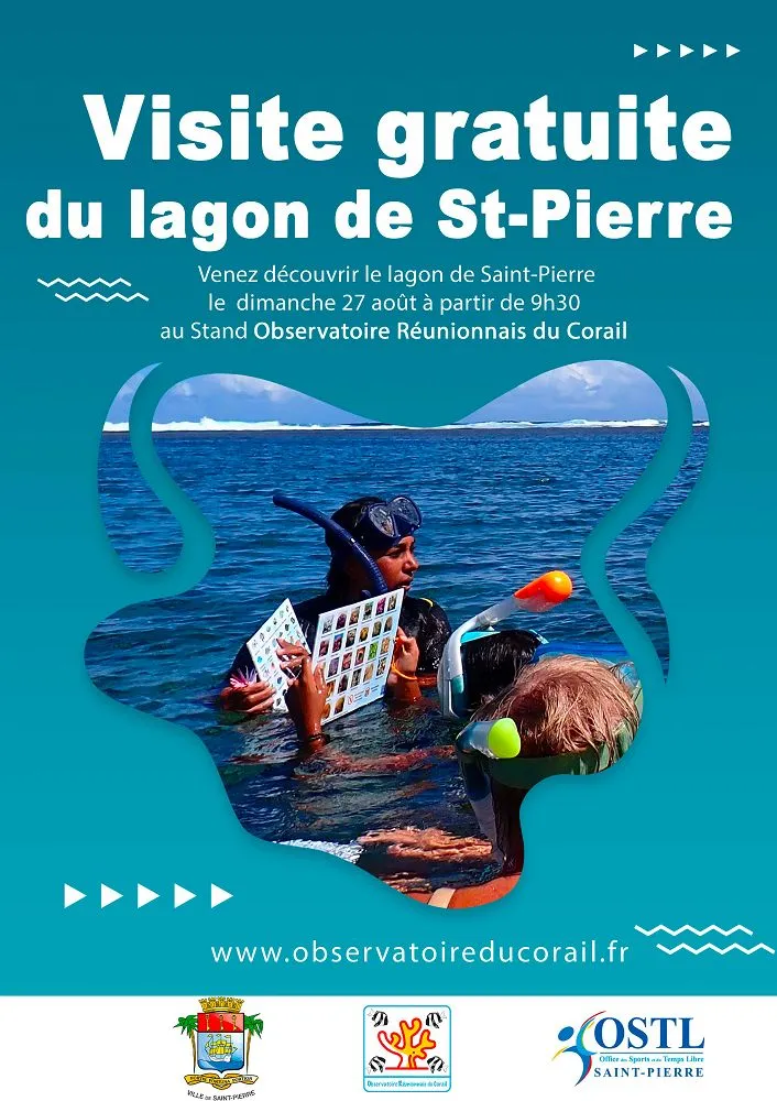 L’Observatoire Réunionnais du Corail en partenariat avec la Ville de Saint-Pierre et l’Office Municipal du Sport et du Temps libres organisent un sentier sous-marin le dimanche 27 août 2023 à partir de 9h30 au lagon de Saint-Pierre.