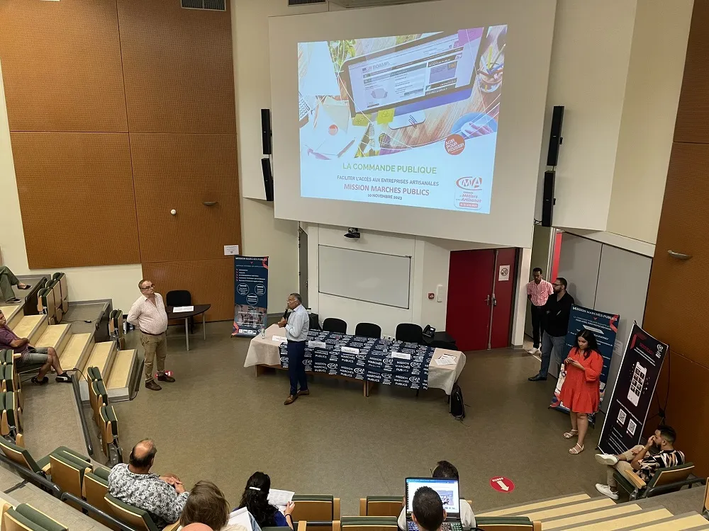 L’atelier abordait plusieurs thèmes essentiels, comme notamment le contexte économique actuel, des rappels des seuils de procédure, les actualités pertinentes, la présentation de la cellule Marchés Publics, des témoignages de partenaires et d’artisans, ainsi que des perspectives et les difficultés rencontrées.